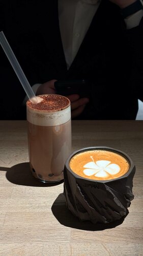 Каждый раз, проходя мимо, вижу полную посадку в этом заведении. Думаю, перед визитом всё же лучше ставить бронь, поскольку, придя в будний день вечером на кофе, мы стояли около 15 минут, ожидая освободившийся стол. Персонал вежливо предложил подождать не на улице, а внутри :) Только вот входная группа очень маленькая, ожидать внутри некомфортно, но за проявленную заботу - спасибо. Если цель - попробовать японские блюда, а не просто выпить кофе - ставьте бронь. Если всё-таки хочется просто выпить кофе - советую не ждать, поскольку в районе Трубной много смежных заведений с таким же кофейным меню и прайсом. Внутри очень шумно, добивает всё это музыка. После рабочего дня голова заболела ещё больше. Брали только кофе (на фото) - всё было вкусно, но капучино всё же немного горчил (возможно, передержали молоко). Отдельно с грустью хочется отметить работу девушки (официант/хостес), которая не предложила нам сесть за стол, который освободился на наших глазах, мы, замёрзшие, подошли к столу, чтобы точно сесть за него, поскольку (в буквальном смысле) в данном заведении какие-то голодные игры за места..) Сев за стол, к нам подошла эта девушка-сотрудник и зачем-то в укор прокомментировала, что мы прошли за стол, "не дождавшись её команды". Это было странно. Столы расположены между собой очень близко, готовьтесь слушать посторонние разговоры других гостей. С Уважением, косньерж дизайн-отеля СтардАрт, Александра. Москва.