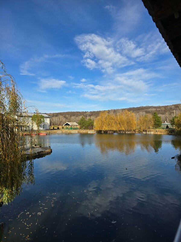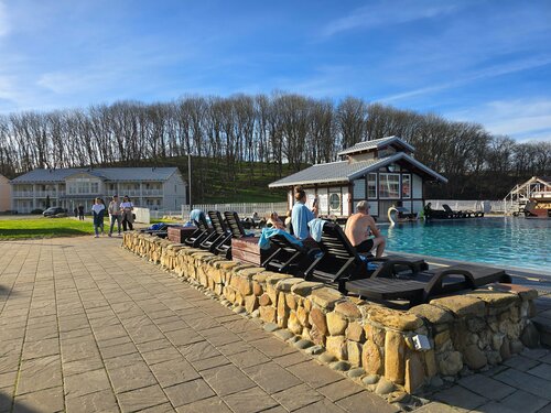 Всем привет! Отдыхали в Кремниевых термах с 21.11 по 23.11.25. Был ранний заезд, в 01:00 нас оперативно заселили, сотрудница службы размещения показала дорогу до корпуса. Отметили приезд и легли спать )) Жили в номере стандарт в двухэтажном корпусе на 1-м этаже окнами на бассейн. Это не очень удобно, т.к. под окнами постоянно кто-то ходит, подъезжают постояльцы выгрузить/погрузить вещи и т.д. При выборе места стоит это учесть. Номер самый обычный - двуспальная кровать, телик(не пользовались), фен, душевые принадлежности, минихолодильник, халаты и полотенца для бассейна, полотенца для душа и т.д. Матрас показался не очень удобным(ныла поясница), подушка оказалась слишком упругой-пришлось отказаться от нее. Звукоизоляция слабовата-соседей сбоку и сверху было слышно. В 7 утра это несколько досаждало. На территории в данный момент работает три бассейна с горячей водой и один с холодной. Несмотря на то, что бассейны небольшие, столпотворений не было. В основном бассейне несколько зон джакузи, места хватало всегда. Очень удобно, что мангальная зона находится на удалении от жилых корпусов, не слышно музыки и прочего шума. Есть прогулочная зона в роще за жилыми корпусами и зарыблённый пруд, что очень порадовало. Завтрак и обед входили в стоимость проживания - шведский стол. Без изысков, но всё свежее, вкусное. Меню разнообразное. Ужин оплачивается отдельно, как и алкоголь. Сотрудники ресторана внимательны и вежливы, всегда к вашим услугам. Отдыхом остались довольны, вдобавок повезло с погодой. Место достойное.