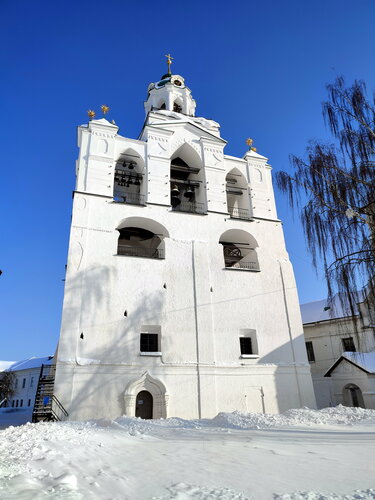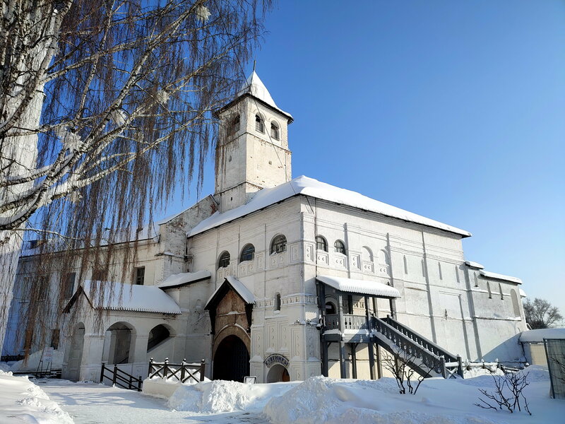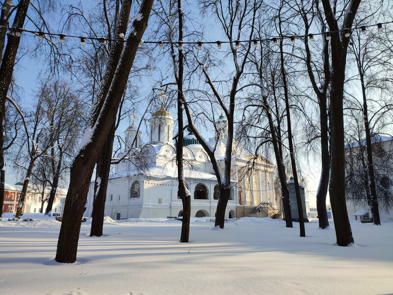 Место историческое и весьма интересное, но мы с трудом мы попали на территорию Спасо‑Преображенского монастыря. Сначала кассирша с недовольством выясняла возраст детей. Мы скромно попросили не кричать и пропустить всех по взрослым билетам — но это было только начало. Мы не смогли пройти по этим билетам: на морозе сканеры с большим трудом считывали штрих‑коды. Прибежала другая тётенька — повежливее — и помогла отсканировать билеты. Внимание! Сохраняйте билеты: они понадобятся для выхода с территории монастыря. На выходе билеты у всех нашлись — хоть и не сразу, но отсканировались они не у всех. Я позвал охрану, и наконец мою жену выпустили из монастыря (с тех пор мы живём вместе и не расстаёмся).