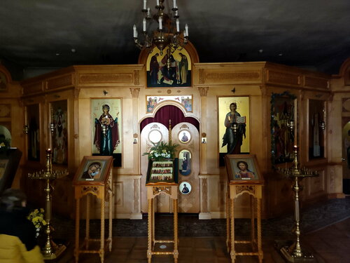 В XVIII веке эту церковь упразднили, но её помещение сохранилось, а восстановили и освятили в 2015 году. Церковь весьма небольшая, она возведена над Святыми воротами монастыря, подниматься в неё нужно по крутой старинной лестнице. Внутри очень уютно и тепло, в феврале мы здесь согревались, туристов в такую стужу не было.