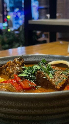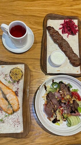 Долго проходила мимо «Кишмиша» по дороге в другие рестораны, но наконец решила зайти и не пожалела. Это, пожалуй, одно из самых универсальных мест в городе: в одном меню восточная, грузинская, японская, азиатская и русская кухни. Были вдвоём с молодым человеком и специально брали разные блюда, чтобы попробовать все. Поэтому делюсь честным впечатлением. Что пробовали: • лагман - наваристый, с достаточным количеством мяса 5/5 • люля-кебаб из говядины с чесночным соусом - сочный, соус делают сами 5/5 • стейк из сёмги - нежный, не пересоленный, но по сочности 4/5 • тёплый салат с ростбифом - лучший из тех, что пробовала в Екатеринбурге, идеальный баланс вкуса 5/5 • манты (курица и картофель) и хинкали с грибным жульеном - сочные, ароматные, одни из лучших в городе • вишнёвый «муссовый» десерт - вкусный, но ближе к чизкейку 4/5 • ежевичный чай с розмарином - скорее десертный, с десертами зашёл идеально 5/5 Что особенно понравилось: - очень тёплый, искренний сервис - ощущение, будто пришёл в гости; - разнообразное меню - реально «есть всё»; - адекватные цены и хорошие порции; - просторный зал, даже в пятницу вечером было много свободных столов; - не чувствуется, что находишься в ТРЦ; - есть скидка по Гринкарте. Что можно улучшить: - сократить количество меню (их слишком много); - сразу приносить барное меню; - сделать воду бесплатной - точнее называть десерты. В целом «Кишмиш» уютный, вкусный и очень гостеприимный ресторан. Хорошо подойдёт и для семейного визита и для ужина вдвоём.