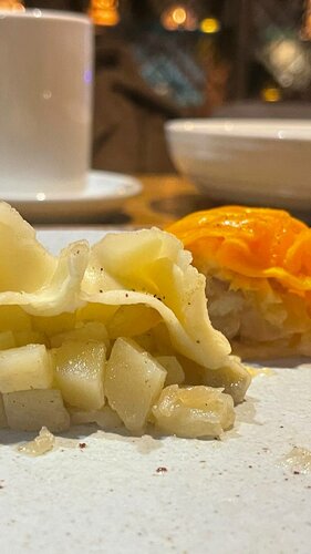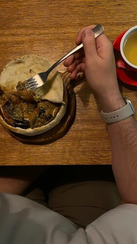 «Кацо» для меня - не просто ресторан, а место, связанное с важными моментами жизни. Здесь было первое свидание с молодым человеком, душевные ужины с мамой, встречи с друзьями и семейные поводы. Я буквально наблюдала, как ресторан рос и менялся и до сих пор возвращаюсь сюда с теплом. Я бываю здесь достаточно много раз - чаще всего с молодым человеком в формате романтического свидания или отметить какое-либо событие с родными и друзьями. Из еды особенно понравилось: • куриный шашлык - сочный, стабильно отличный много лет 10/10 • жаркое под хлебушком от бабушки Марго - вкусное, уютное, с шикарной подачей 10/10 • мини-хинкали с грибами и сыром в ореховом соусе - сытно и насыщенно 8/10 • брауни-хачапури - щедрый, необычный десерт, очень вкусный 10/10 • чаи по 800 мл - смородиновый с розмарином особенно хорош для осени и зимы. Из нюансов: некоторые супы стали острее, чем раньше - было бы здорово помечать такие блюда в меню. «Кацо» - про гостеприимство. Сервис за последние годы заметно вырос: официанты внимательные, тактичные (кроме Алексея, который на др моей подруги вел мягко говоря себя не тактично 6 ноября 2025 г.), создаётся ощущение, будто ты в гостях, а не просто в ресторане. Интерьер уютный, располагающий к долгим разговорам. Что можно улучшить: - пометить острые блюда в меню; - добавить свет в гардероб; - сделать формат чая поменьше для одного гостя; - добавить крючки для сумок в уборных. • в выходные часто ожидание 15+ минут; • есть скидка по приложению «Гипербола»; • появились бронирования на выходные - это большой плюс. Лично мне в «Кацо» и хочется возвращаться снова и снова. Обожаю этот ресторан и желаю ему держать высокий сервис и качество блюд на уровне.