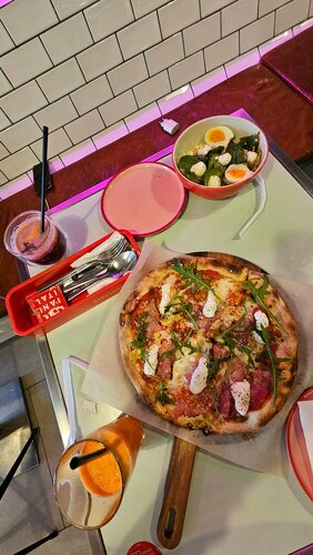 Вкусная пицца, невкусный салат. За пиццей зайти можно, но не более. Хорошее обслуживание и антураж.