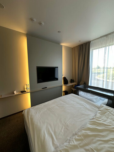 Отличный отель, рядом с трассой. Мы останавливались с маленьким ребенком, есть детские кроватки. В отеле очень удобная кровать и подушки. По сравнению со всеми отелями по пути от Сочи - это просто рай какой-то. Единственное ночью было прохладно, мы не настроили бризер и замерзли. Удобно, что есть еда, которая не уровня кафе, но очень даже приличная Особое внимание хотелось бы отметить на приветливость персонала. Я бы сказала, что администратор сделала нам проживание в отеле в 100 раз приятнее! Спасибо большое, если еще раз рискнем на путешествие на машине, обязательно приедем еще раз
