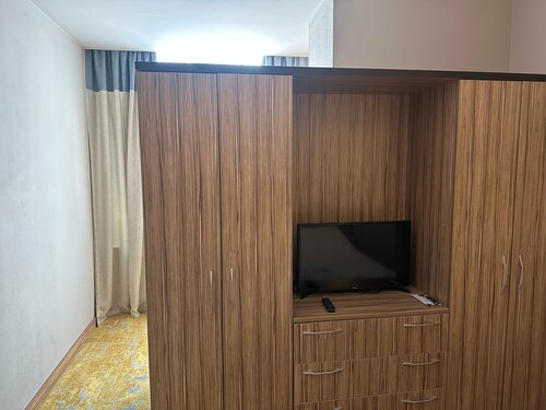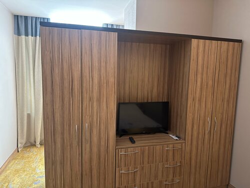 4 звезды в отеле считаю завышенными. Не знаю, может нам так не повезло с номером, но шкаф посреди номера который перекрывает весь свет - считаю не верным интерьерным решением. На территории не особо убирают снег и грязь, гулять с коляской просто невозможно. Парковка маленькая. На заселение в очереди простояли 30 мин. Приезжали на 2 ночи, но после 1 уехали.