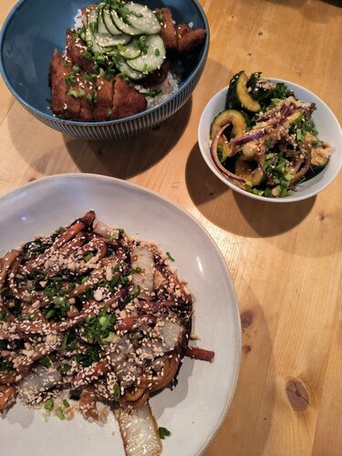 выбрали наугад место на карте, чтобы пообедать. кафе оказалось уютным, с небольшим меню. у входа стояла табличка "готовим лапшу вручную" и сразу стало понятно, что я буду есть и не прогадала, лапша в удоне была очень вкусной. карааге тоже понравился, невероятно хрустящий, но не жёсткий.