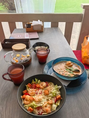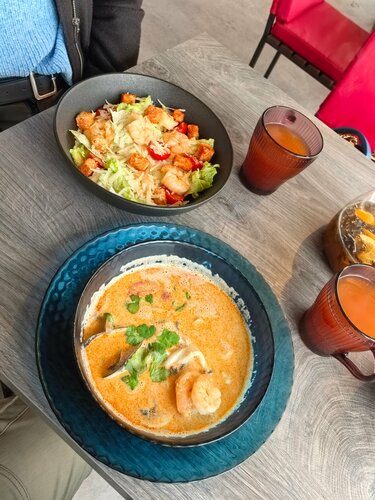 Здесь прекрасно все - от расположения и вида до еды и цен. К месту очень расположил персонал, который является лицом данного заведения. Сотрудники показали себя вежливыми и обходительными. Внутри есть санитарный узел для посетителей. Том-ям и мидии великолепны - огромные порции и невероятный вкус. Единственное, я не понимаю причуду разного рода кафе оставлять мидии для том-яма в ракушке. Мне, да и, уверен, 100% гостей не нравится руками копаться в супе, чтобы эти мидии из ракушек вытащить. Не претензия, поэтому звезды не снижаю. Пожалуйста, доведите до официантов информацию, что перед оплатой нужно спрашивать о наличии гостей в бонусной программе. Столкнулся с тем, что оплатил заказ полностью, а на счету у меня были бонусы для оплаты, просто это вылетело из головы.