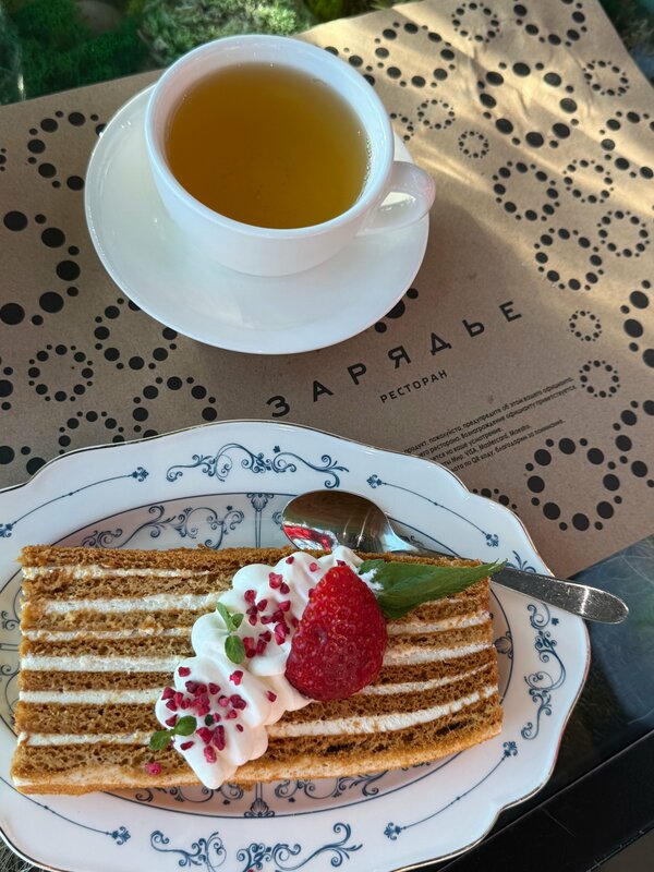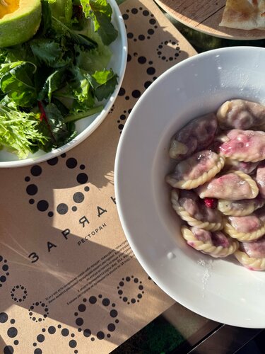 Пришла пробовать постное меню в ресторане «Зарядье». Не была тут год, наверное, и, неожиданно, поняла, что цены слегка поднялись. Но с другой стороны все логично, и тут это заметнее, так как цены в меню фиксированные и когда все по 600₽, а потом все по 800₽, то это замечаешь сразу. Но, кстати, здесь сейчас не все по 800₽, а разделами в меню. Например, постное меню, горячие блюда из мяса, птицы, рыбы и паста по 800₽, а салаты, супы, десерты по 600₽; гарниры по 200₽. Напитки тоже в зависимости от наполнения. Так что в целом ценник продолжает быть одним из самых демократичных для такого уровня продуктов и блюд в самой центральной локации Москвы, в 5 минутах от Кремля в красивом и современном парке «Зарядье». Итак, ресторан «Зарядье» во главе шеф-поваром Сергеем Лазаревым представил новое постное меню, в котором сделали акцент не на ограничениях, а насыщенных вкусах. В разделе закусок и салатов - вареники с картофелем, белыми грибами, с луковым фри и трюфельным соусом, картофельные крокеты со шпинатом и шампиньонами с хрустящей корочкой и нежной начинкой. Я, как любитель баклажанов, не удержалась от запечёного баклажана с томатным соусом и тремя видами бобов - нутом, машем и эдамаме. Оказалась очень необычно и интересно! При всем моем равнодушии к бобовым, тут они так классно подружились с основным овощем, что получилось совершенно непривычное, вкусное блюдо. Среди салатов в постном меню - фатуш с овощами, кешью, запечённой тортильей и заправкой с наршарабом. Но я выбрала из основного зеленый с авокадо, он тоже полностью соответствует правилам Великого поста. В разделе супов - густой суп из белых грибов с перловкой, опятами и пастернаком. Я сто лет не ела суп на перловке, и уже забыла, как же я ее люблю! Супчик отличный. В горячих постных блюдах сыр тофу в кокосовом соусе карри с томатами черри и рисом басмати, а также жареный молодой картофелем с вешенками, белыми грибами и шампиньонами. Но у меня места на них не осталось, так как я не удержалась и заказала десерт. А на десерт гостям предлагают вареники с вишней и сахарной пудрой, чайно-медовую коврижку с чёрной смородиной и грецким орехом, а также шоколадный бисквит с черносливом. Я выбрала вишневый вареники. Там такое шикарное тоненькое тесто, и по сути одна сплошная вишня, идеально! Конечно же, обедала я не одна, а со своими детьми мясоедами. Уж они тут разгулялись. Из того, что мы заказываем в «Зарядье» всегда - это куриный шницель, он гигантский! Размером с большую тарелку целиком. Плюс хрустящая корочка и нежное мясо внутри. К нему подают бруснику и квашенную капусту. Младший, конечно же, взял тартар из телятины с черными греночками. Хачапури по-мегрельски в стол. Щи, картошку фри, и, конечно, десерты. Все стабильно вкусно, и хоть ценник чуть растет, но порции не уменьшаются, и для ресторана они реально очень большие. В ресторане, как обычно, полная посадка и небольшие очереди на улице! Ну тут это стандартная история, особенно в выходные и праздники, так что рекомендую бронировать стол заранее.