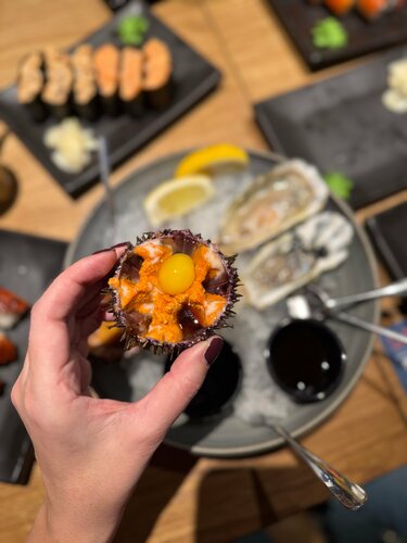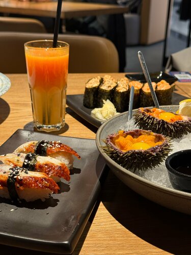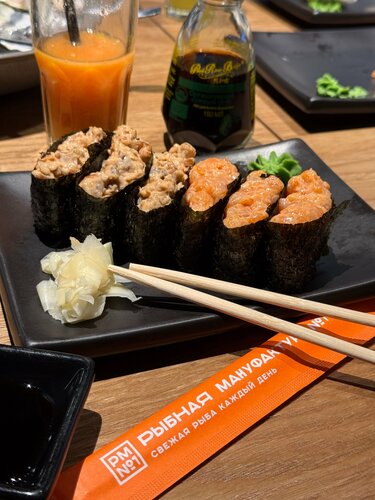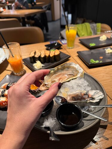 🐟Sea food bar «по соседству», это про сеть «Рыбная мануфактура». 🍱Когда хочется обычных роллов быстро, точно свежих и по стандартам, без лишних коммуникаций с официантами, мы идем в РМ. Недавно увидели, что она есть в Павелецкой плазе. Через эту локацию часто проходим, так что, как говорится, все сложилось. В этой сети, на мой вкус, одна из самых удобных схем заказа, при том, что ты сидишь в зале и обслуживает тебя официант, но первоначально ты выбираешь все в приложении. По qr-коду на столе считываешь локацию и свое место, и уже к нему тебе принесут все, что ты закажешь дальше. Заказываешь спокойно, сам листаешь меню с картинками, кладешь в корзину, видишь общую сумму заказа, без суеты и спешки, и без того, что над тобой стоит официант (а в кафе не дорого сегмента уже на этом этапе часто начинаются проблемы, от взаимопонимания, до четкости в записи заказа). Потом онлайн оплачиваешь, и тебе в приложении пишут через сколько будет готов твой заказ. А дальше официанты по мере готовности начинают приносить твои блюда к столу. Происходит все довольно быстро. Мы заказала супчик, роллы, гунканы, ежей, устриц, все отдали в течение 10-12 минут. Так же хороший выбор напитков, как алкогольных, так и без. Мы взяли фреши, лимонады, кофе, все так же принесли быстро, прохладное. Со столов убирают оперативно. Официанты в основном молодые ребята и девочки, доброжелательные, шуршат по залу довольно быстро. Вообще зал РМ в Павелецкой плазе очень понравился, большое открытое пространство, много столиков на комфортном расстоянии друг от друга, нет страшного ощущения фуд-корта, где бардак и грязь и проходной двор) тут прям кафешка полноценная, но при этом видишь, что в ТЦ происходит. Кухня, кстати, тоже открытая, и видно как готовят заказы. Специально наблюдала: все чисто, аккуратно, по всем правилам. Есть можно смело! Конечно же, мы всегда берём с собой роллы, потому что, поймав волну, хочется ими наесться до отвала, а за один присест это, обычно, не получается. У нас есть любимая позиция, которая собрана идеально, и ее заказать можно в один клик - сет «большой лосось» за 4099₽. Заказ с собой тоже делаем в приложении, и что приятно, скидка на самовывоз 10% от цены заказа, автоматически пересчитывается при оформлении. Собираю или сразу, или ко времени, как отметите в приложении. В Павелецкой плазе в РМ только кафе, но на некоторых других локациях есть еще и магазин, где можно купить свежую икорку, рыбку и морепродукты. И в приложении можно поймать акции и скидки на все это! Ну и главное, конечно, мне тут очень нравится качество рыбы и морепродуктов, действительно ощущается свежесть. Даже намека на какие-то инородные запахи нет, а это первый тревожный звоночек в рыбных заведениях.