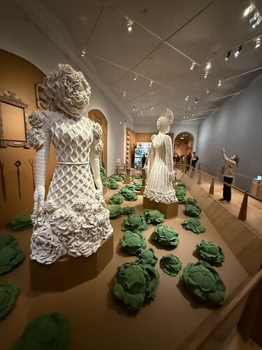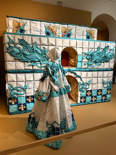 Была на выставке «Сны Алёны», которая проходит на первом этаже музея. Это выставка-тотальная инсталляция, которая представит Алёну Ахмадуллину не только как легендарного российского кутюрье, но и как художника, искусство которого выходит далеко за пределы пространства моды. Я обожаю творчество Алены, много лет она является одним из моих любимых дизайнеров, с удовольствием побывала на выставке. Да, она не большая, но очень харАктерная, и так ярко прослеживается «русский дух», как в нарядах, так и во всем оформлении. Получила огромное удовольствие.