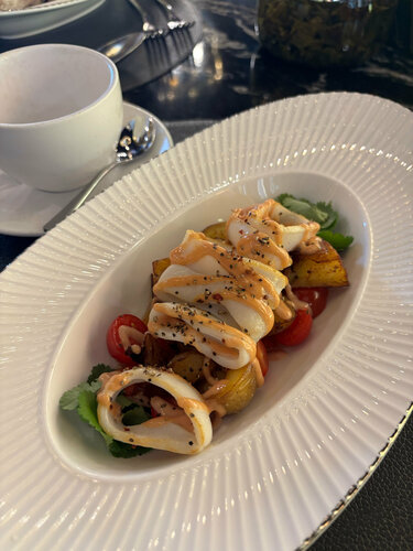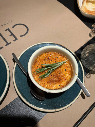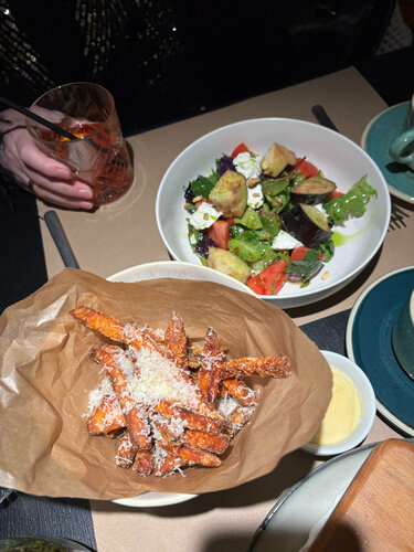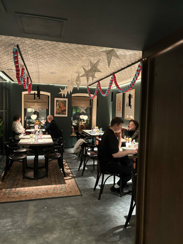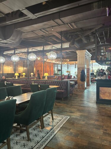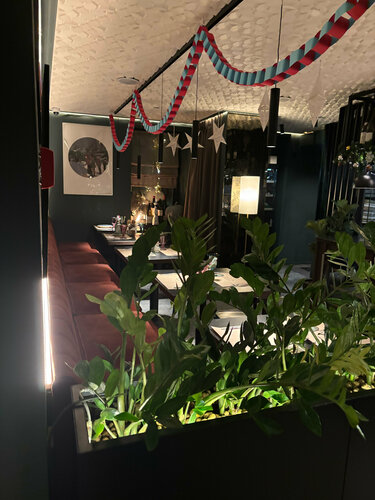 Оказались здесь потому, что захотелось посидеть где-то с мамой накануне концерта в БКЗ. И несмотря на то что здесь в целом неплохо, не думаю что еще вернемся, слишком много прекрасных мест в Питере. Интерьер в целом нейтральный, но тесно между проходами для официантов и входной зоны толком нет, когда кто-то заходит с улицы, внутри сразу холодно. По еде неравномерно, батат вкусный, креветки пиль пиль не очень совсем, ни соли ни специй ни сочности. Хотя подача была мощная, но лучше бы они были вкусными. Салат хороший, крем брюле бедняга не хрустел. Но если по кухне в целом хорошо, то обслуживание очень суетное, носятся, над головой несут горячее, выносят счет, потом снова его выносят с твоими деньгами, потому что ошиблись, это не дает расслабиться и насладиться вечером.