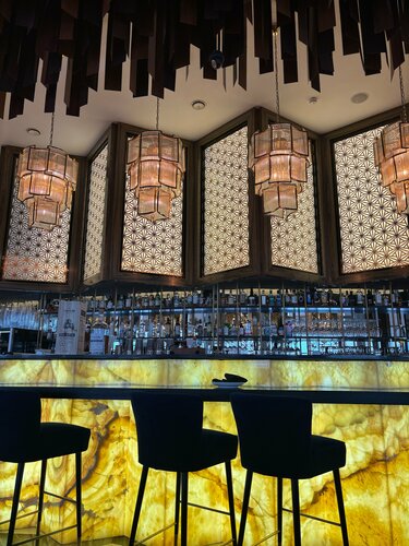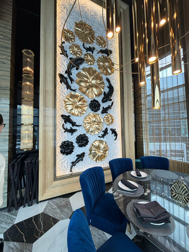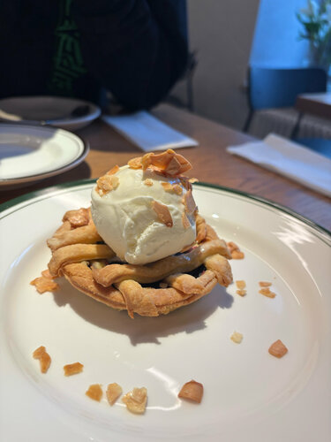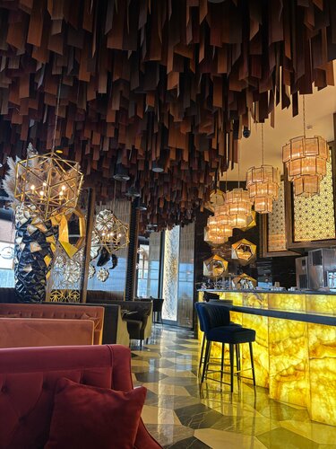 По фото казалось, что интерьер дорого богато, а в жизни очень стильно, роскошно и комфортно во всем этом. Хорошее, спокойное обслуживание, по меню проконсультировал наш официант Александр, все расссказал, в целом все отлично, но чуть холодновато. В меню много морских позиций, очень мало блюд без мяса и рыбы, практически единицы, если кто веган то придется не просто.Но! Всё, что я попробовала, было необычайно вкусно. Я особо ничего не ждала, от того эффект был еще сильнее. Очень нежная и ароматная запеченная цветная капуста с двумя соусами, креветки в кляре с васаби просто на пять с плюсом, нежность и хруст в одном флаконе. На "макаронном цеху" стоит явно Мастер, осталась в восторге от пасты с копченым лососем и бобами, паста с гребешком тоже была фурором. Десерты перепробовала почти все, ну тут рай для сладкоежки, но самый самый оказался шоколадный десерт, не помню как он по меню называется брауни или шоколадный торт, такой многосложный, столько текстур. Теплый пирог, холодное мороженное, над ним какой-то мусс, два соуса, крошка - думаю вернусь только за ним однажды. Также великолепный чизкейк с мороженым из маракуйи очень хорош, но чуть более предсказуем. Необычный сметанник, потому как половина светлая - это вспененное мороженое, а вторая угольная - это сам сметанник при том не очень классический. Яблочный пирог в меру классический, корзинка с ягодами прекрасная. Но, помимо отличной еды царит какая-то особенная атмосфера, забываешь про зиму, холод, проблемы и просто отдыхаешь душой. Видимо поэтому несмотря на огромное количество посадочных мест, свободных практически не было.Может отзыв получился слишком сладеньким, но ничего плохого не было замечено)) PS спустя два года здесь всё также хорошо, но стало значительно дороже)
