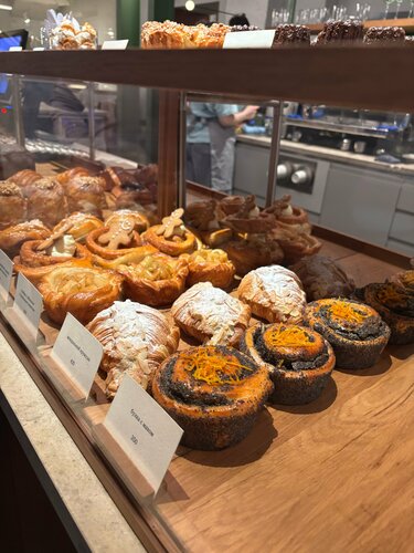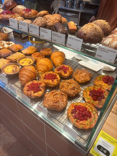 Красивый, светлый, дружелюбный, выбор прекрасный, всё нравится, риски только для фигуры, ну буду развивать силу воли, не впервой) Мы то все понимаем, что для нашего района это праздник чего уж там) Тартин, вензели, эклеры, булочки всё вкуснейшее.