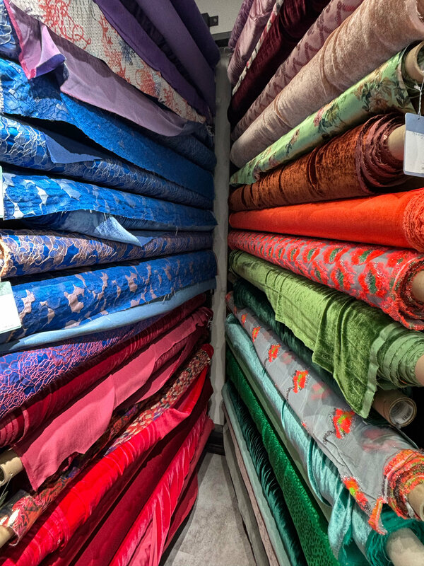 Удивительный выбор красивых тканей, цены высокие, но и ткани качественные и стильные. Всё так удобно расставлено, удобно рассматривать. Глаза разбежались от красоты, захотелось всего и сразу. А какие кружева, мама мия!