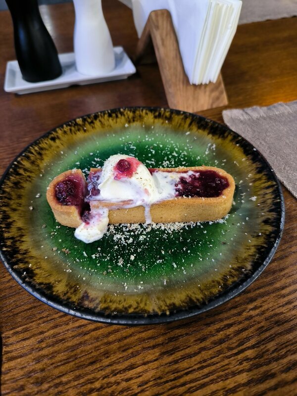 Из всех посещённых нами ресторанов Светлогорска Гравлакс самый лучший. Брали салат с подкопченной скумбрией, решти с гравлаксом, спину кабана, десерт с ягодами и хвойный чай. Всё очень вкусно, порции большие, подача быстрая. Особенно понравился решти, чай и десерт. Десерт вообще отвал всего. Нежное тесто, ягода лесная ароматная, не приторная и шарик мороженого как дополнение. Чай такой пробовали впервые, очень понравился. Рекомендую ресторан