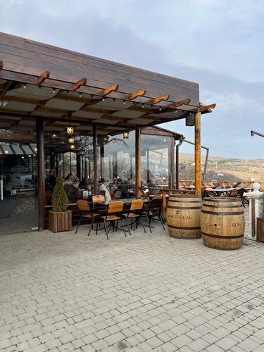 Хорошее место. Из плюсов несомненно панорамный вид на Гурзуф. Красивая терраса для теплого времени года. Расположение. Очень вкусная кухня, хорошие,большие порции, красивое оформление. Вежливое и быстрое обслуживание. Большое меню,разнообразное. Из минусов, непонятно,где туалет. Посадочных мест не так много и приходится ждать свой столик. Нет покрытия на полу и в холодное время года холодно, еще и сквозняк идет от 2х дверей. Камин не работал и источник тепла отсутствовал. Спасибо, что есть пледы. В общем, заведение довольно небольшое и не слишком уютное. Но очень вкусно и хорошо обслуживают, поэтому нам очень понравилось. Хочется вернуться.