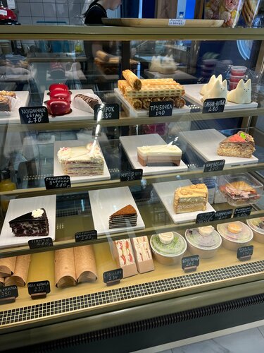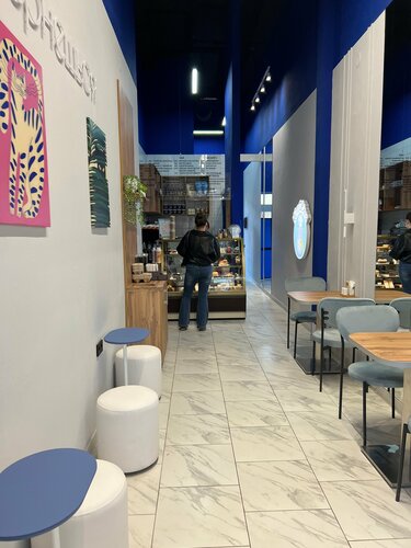 Весьма минималистичное заведение и долго там не посидишь, но есть все необходимое. Для кофе на вынос,так вообще. Довольно обширный ассортимент, на любой вкус. Есть десерты и перекус. Вежливое обслуживание,милая девушка помогла нам определиться с напитками, в целом все супер. Раф был идеальный,нежный,вкусный, ароматный) а вот какао не сильно понравилось,не хватило насыщенности, хотя и не самый плохой. Понравилась мелочь, что стаканчики с объемом сразу перед глазами, помогает определиться.В общем эта позиция для нас спорная. Заведение понравилось,хочется вернуться )