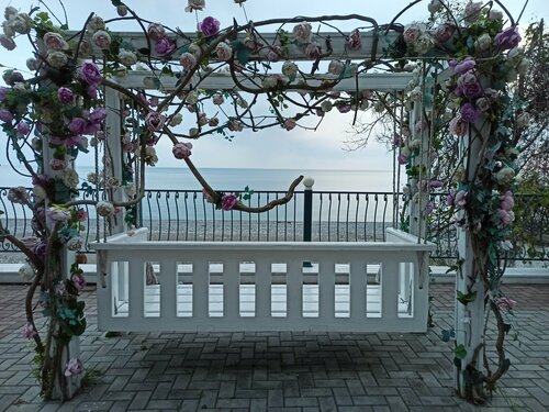 Здесь мне понравилось больше всего из всех кафе в Абхазии, где мы были! Всё вкусное безумно, багеты обязательно у них попробуйте! Очень уютно, официанты лапочки, а девушка ещё и в форме, напоминающей одеяние Бэль из Красавицы и чудовища, интерьер навевает мысли о Провансе и чём-то милом и девочковом)))) на улице у них красивые беседки и гигантские качели с видом на море. И да, ещё у них самый приятный туалет в Абхазии)))) Единственное, нам безумно повезло и мы сели за последний свободный столик! Пока что у них довольно мало посадочных мест, но к сезону думаю, отремонтируют 2 этаж и будет проще попасть к ним)