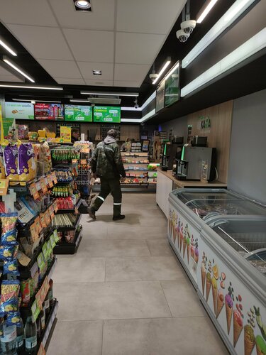 Хотел заехать на мойку, но человек который с неё только выехал отговорил. Сказал что днище и проёмы очень плохо помыло. И долго ещё потом ходил с тряпкой кругами выбирал. Зашёл в туалет, мыла и антисептика нет. В общем вроде и чисто, даже небольшой магазинчик + мини кафетерий с хотдогами и круассанами. Но есть к чему стремиться. В итоге минус звезда за мойку, а вторая за отсутствие мыла и антисептика в санузле.