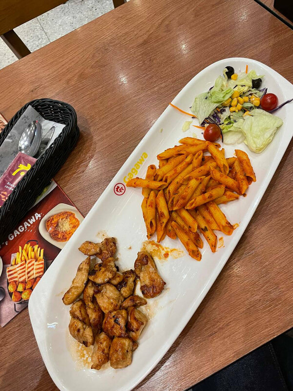 Сеть, которая перетащила трафик от фастфуда. Мой друг обожает их и постоянно ходит. Я тоже решила попробовать.😋 однозначно лучше и полезнее макдональсов и ростиксов) Привычная нормальная еда - макарошки, мясо и салатик, которую можно есть часто и она не надоест. Пряно и ароматно. Быстрая подача. Вообщем, правда очень вкусно. Была в 2х ТЦ- здесь и в Саларисе. Здесь однозначно готовят лучше. Не зря сеть так популярна , много семейных посетителей с детьми. Когда не хочется экспериментов, а поесть вкусно на 100%, однозначно сюда вернусь.