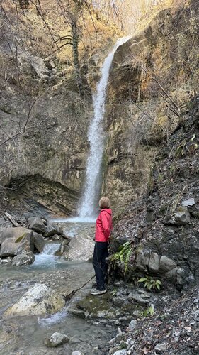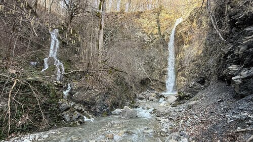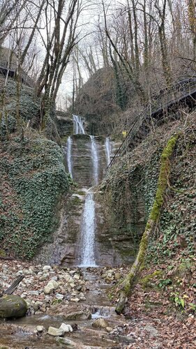 Посетили данный водопад 11.02.2026 г. Очень удивил своей красотой, размером и мощью. Издалека показалось, что это он, когда мы смотрели на другой водопад. И какого было наше удивление, когда мы все-таки дошли до него, повернули за «угол» и увидели эту красоту. Шикарный водопад. Обязателен для посещения. И соседствует с ним еще один водопад на соседнем ручье👍👍👍