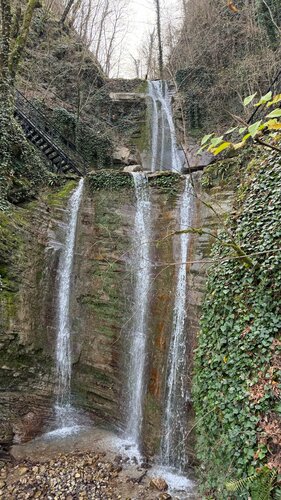 Очень красивые водопады, дошли до самого верха. С погодой повезло, было солнечно. Отдельное приключение это перейти мост через реку Псезуапсе. Подъемы к верхним достаточно крутые. Летом кайфово будет накупаться