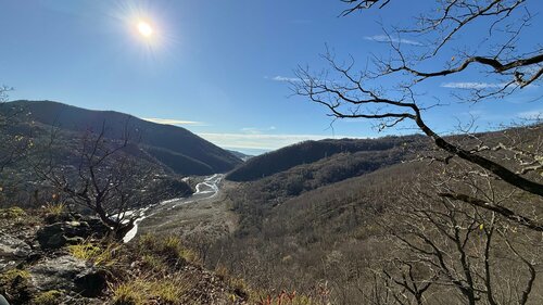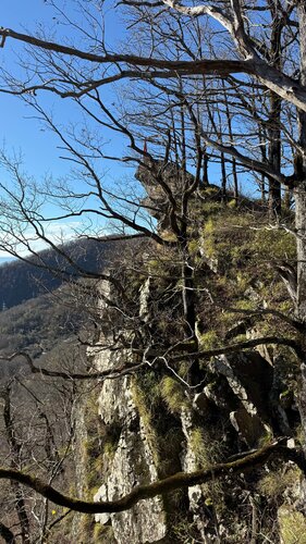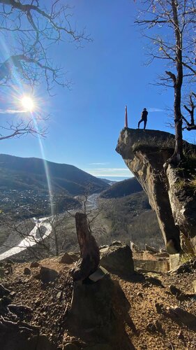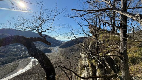 Называется это место скала Тещин нос. Подъем немного крутоват, но не долгий. Отсюда открывается отличный вид на море и долину реки Псезуапсе. Далее прогулялись на Генеральские водопады