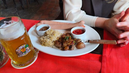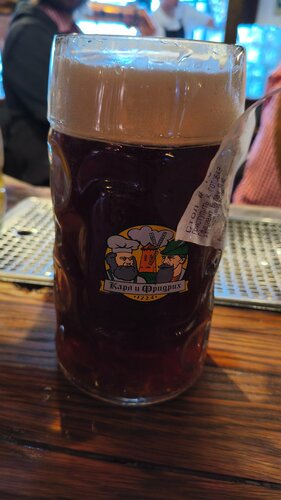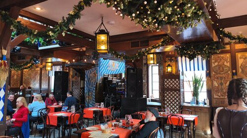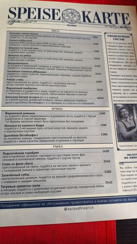 Шикарное место!!! Атмосферно,вкусно, быстро!!! Есть фотограф, купили кадры на память. Учитывая 8 марта бронировали стол заранее и не зря!!! Очередь была приличная. Персонал в забавных национальных костюмах, смотрится потрясающе!!! Мы брали колбаски, гуляш в хлебе, штрудель и пунш. Это просто восторг!!! В меню ресторана-пивоварни  сделан акцент на баварскую кухню, мясные блюда и собственное свежесваренное пиво. вечером живая музыка. Но мы ушли раньше. Пивные закуски: фирменная «Большая пивная корзинка», гренки, брецели со шмальцем, сырные палочки и ассорти колбасок. Горячие блюда из мяса: свиная рулька (хит всех подобных заведений), альпийский грёстель, разнообразные шницели и стейки. Супы и салаты: суп-гуляш в хлебе это просто сказочно вкусно и необычно, классический оливье с мясом, салат с хрустящими баклажанами. Собственная пивоварня: 4 постоянных сорта (светлое Lager, пшеничное Weizen, тёмное Dunkel и красное) + сезонные новинки. Я брала пунш малиновый. Ооочень вкусненько!!! Детское меню: отдельные позиции для маленьких гостей. Специальное предложение: есть отдельное меню для собак.