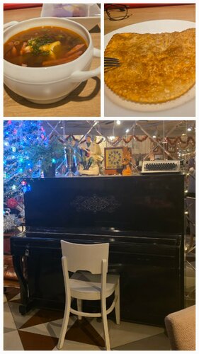 Зашла отобедать. Комплексный обед до 16.00 Выбрала сборную солянку, чебурек с бараниной, селёдку под шубой и квас. Мне всё очень понравилось, солянка отличная. Квас выше всяких похвал, настоящий, с осадком, ядрёный! Мест было много, пришла в начале четвёртого дня. Замечательное место👍👍👍