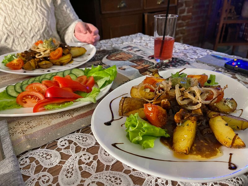 Заехали в отель на ночь, решили пообедать в ресторане Модерн. Много блюд незнакомых, однако выбранные позиции не разочаровали! Размер блюд, вкус и цена отличные. Ожидание подачи минут 25.