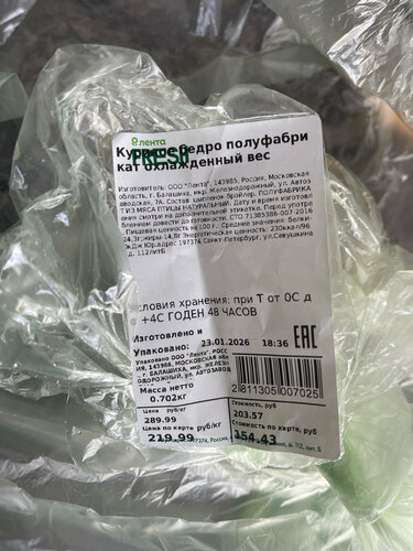 Купила 23.01.2026г курицу бедра на развес, мясо оказалось протухшим, дома открыла пакет, уже почувствовала запах, помыла мясо, каждый кусок тухлый, конечно все выбросила. Прошу администрацию магазина обратить внимание на контроль качества.