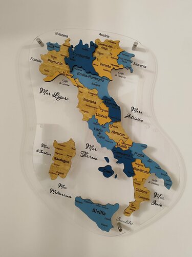 Заказывала для дома многослойную карту Италии в цвете Исамаль 52*60 см с надписями на итальянском языке. Результат - восторг! Карта выглядит очень дорого и качественно, не могу налюбоваться, так и тянет в нее позалипать) В комплекте была вся фурнитура для крепления, подробная инструкция. Ребята большие молодцы, общение было очень комфортным, быстро согласовали детали и взяли заказ в работу, по срокам все было четко. Наткнулась на эту компанию случайно и очень рада, что обратилась к ним. Спасибо!