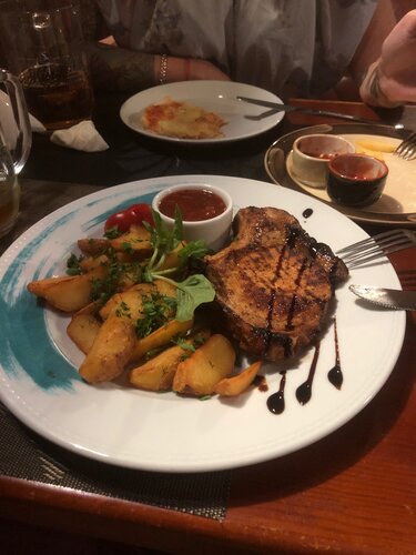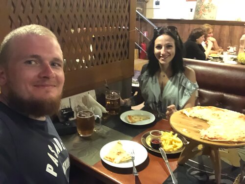 Еда - 5/5 (вкусно, красиво. Пицца 4 сыра просто бомба💣) Сервис - 5/5 (вежливый персонал) Цены не кусаются. Очень понравилось, очень довольны. Обстановка приятная, аквариум, картины и другой декор.