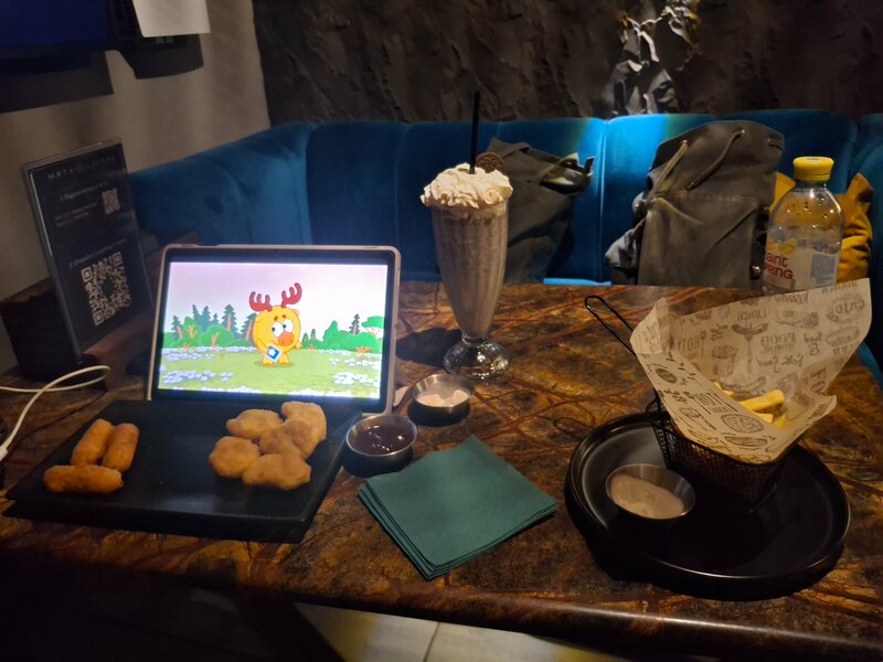 Еды выбор очень скудный и все не очень вкусное. Пицца например была подгоревшая и с кусочками какого-то жира вместо цыпленка. В общем не очень