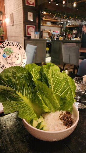 Очень понравился ресторан! Посетили в первый раз, отмечали мой день рождения, который был 2 месяца назад)) и было очень приятно увидеть именную тарелочку с поздравлением! Это создало настроение ❤️ Лично мне всё зашло – атмосфера, интерьер, обслуживание и главное – еда! Прям настоящее гурманское меню! Крабовые котлетки с пюре и закуска из тунца восхитительны! Попросили сделать авторский чай без сахарного сиропа – без проблем! Ну и вишенкой – прямо над нашим столиком карта Camino de Santiago, о котором я давно мечтаю 😇 Благодарю за прекрасный вечер! Придём ещё ❤️❤️❤️