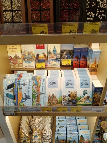 Магазин с большим ассортиментом сладостей от разных фабрик города. Возможность выбора разнообразных подарков и сладких гостинцев. Цены высокие.