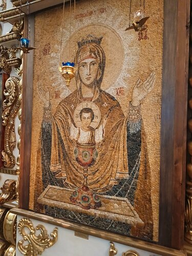 Место духовной силы, очень красиво. Место подумать на смыслами и приоритетами в жизни. Впервые здесь увидел иконы из камня (не из смальты).