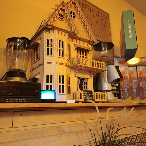 Это сложно назвать кафе. Очень маленько заведение. Места на 2-3 человека. Но если вам только взять кофе по пути - отлично, не придётся стоять на улице. Кофе неплохой, девушка приветливая. Внутри интересная обстановка