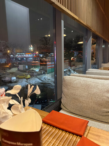 Приятный интерьер и музыка. Готовят быстро, вкусно, хорошее обслуживание и приятная атмосфера. Часто здесь бываем, всегда остаемся довольны. Домой тоже часто заказываем. Нравится система лояльности.