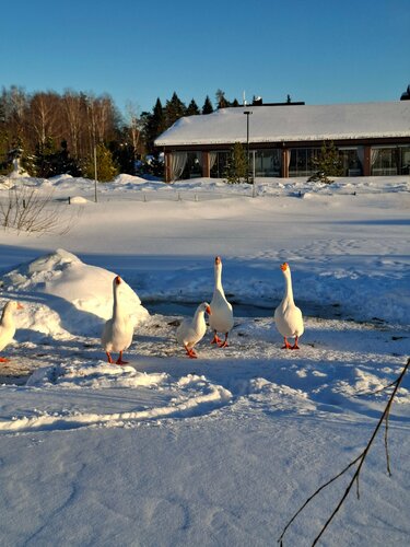 Отдыхали с 21 по 23 февраля. Очень все понравилось - ухоженная территория, вкусная еда в ресторане (завтрак был включен, прекрасный выбор блюд и напитков на любой вкус). Для меня пунктик - это постельное белье и полотенца, все прекрасно - белоснежные плотные простыни и полотенца. А еще нас покорили гуси - такие "говорливые" и очень красивые. Привет Павлу, который встречал нас при въезде и потом много рассказывал о терртории, активностях и просто приятно поболтать