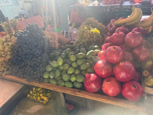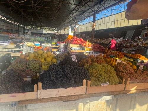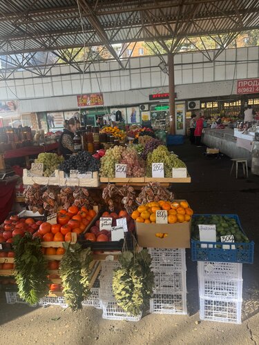 Выбор продуктов просто наповал !! Пока обошли один ряд- перепробовали все- объелись!! Качество и вкус и цены - порадовали!! Мясные деликатесы, сыры, фрукты, гранатовый сок свежей выжимки , чурчхела, и общение с продавцами- вот это праздник!