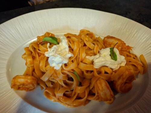 Забронировали столик на 14 февраля вообще по ошибке - видимо, поэтому в зале были только мы одни. Сначала даже подумали, что ресторан закрыт и мы пришли раньше персонала 😅 Когда понял, что перепутал место, начал лихорадочно искать другой ресторан со свободными столами, но город, похоже, решил провести флешмоб «ни одного свободного стула». Пришлось остаться - судьба, видимо, тоже была за этот ужин. Ставлю 3 звезды. Первая звезда - за встречу: персонал очень вежливый, внимательный, даже мини-табуреточку под сумки поставили. Мелочь, а ощущение, будто сумка тут VIP-гость, а ты её сопровождающий. Вторая звезда - за подачу и вкус: блюда выглядели красиво, аккуратно оформлены, и в целом всё было вкусно. Тут без сарказма - правда вкусно. Третья звезда - за цены: ужин на двоих вышел примерно в 2600 ₽, что для ресторана вполне бюджетно. Сейчас за такие деньги иногда только моральную поддержку получаешь, а тут ещё и еда. Меню не слишком большое, но выбрать есть из чего. Правда, когда глаз уже избалован заведениями, ловишь себя на мысли, что многое уже пробовал - поэтому взгляд цепляется в основном за деликатесы или локальные фирменные позиции. Остальное листаешь с видом гастрокритика, даже если в обычной жизни радуешься пельменям. Теперь о минусах. Заказ ждали долго - настолько, что успели обсудить планы, воспоминания и пару философских тем. Интерьер больше напоминает столовую, чем ресторан: столы слегка липкие (не катастрофа, но знакомство запоминается), мебель не самая удобная. Столы низкие - сидеть некомфортно, ногу на ногу под столом уже не закинешь, а это, между прочим, важный показатель ресторанного дзена. Стулья мягкие, но ощущение, будто они сами сомневаются в степени своей мягкости. Отдельный момент: подали чайную пару, а ложки - из разных комплектов. Вроде мелочь, но для ресторана это как прийти на деловую встречу в разных ботинках - технически можно, но вопросы возникают. В целом место с потенциалом: кухня хорошая, персонал старается, цены приятные. Но атмосфера и детали пока тянут уровень вниз. Сюда можно зайти поужинать без особых ожиданий, но если выбирать место именно для свидания - лично я бы всё-таки посмотрел другие варианты. Хотя как запасной план на случай тотального аншлага во всём городе - вполне рабочая история.
